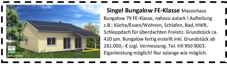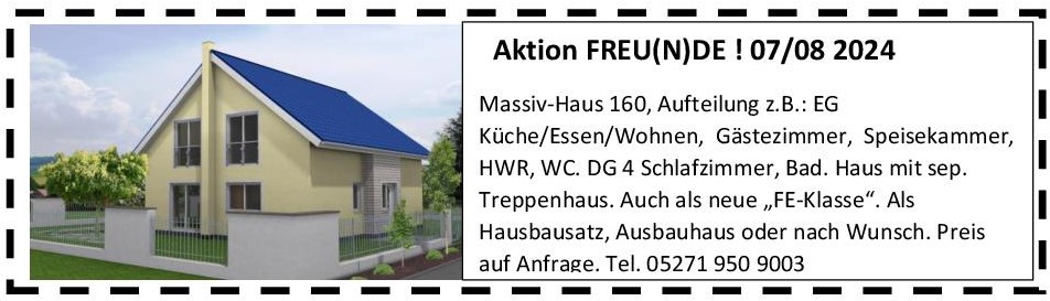 Referenzobjekt im Kreis Höxter/ Kreis Holzminden zu vergeben: Massivbauweise Infos unter 05271 / 950 9003 |
